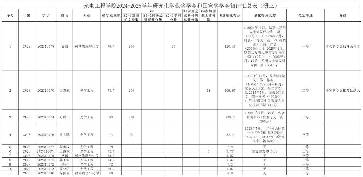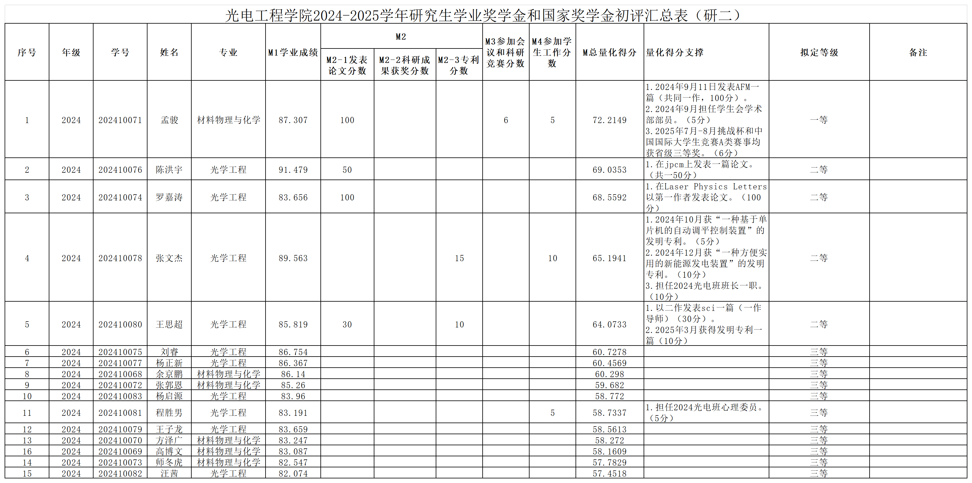 、新能源学院2024—2025学年研究生奖学金评定量化计算办法》。经研究生个人申请,学院审核评选,现将2024-2025学年研究生学业奖学金学院初评结果进行全院公示,公示期为5个工作日,2025年10月14日至10月18日,在此期间若有异议,请于2025年10月18日前将意见反映至1108办公室张朋刚老师或1116办公室张传坤老师处。